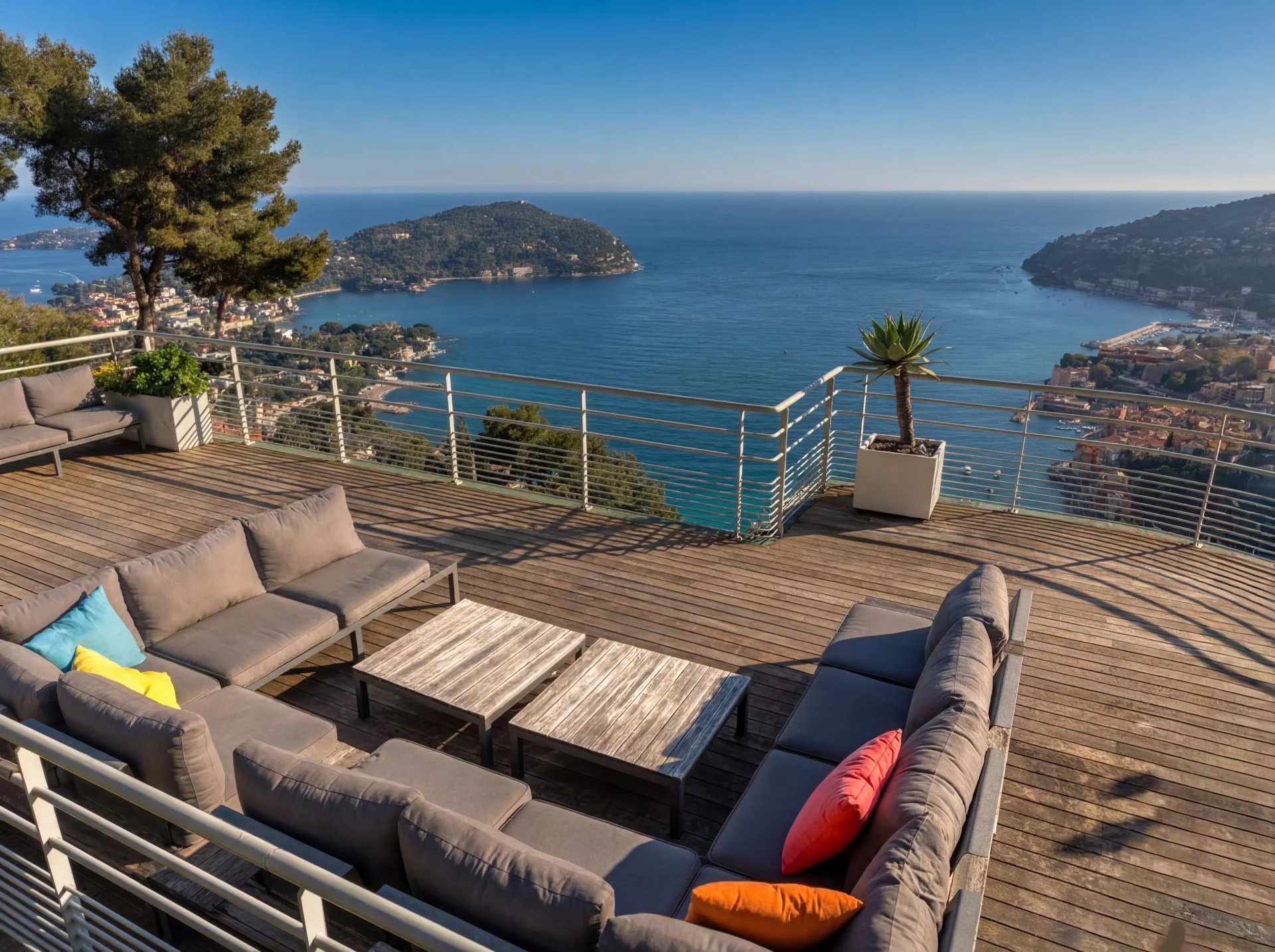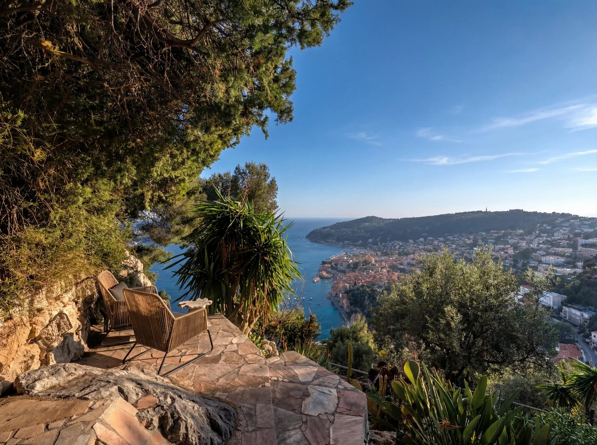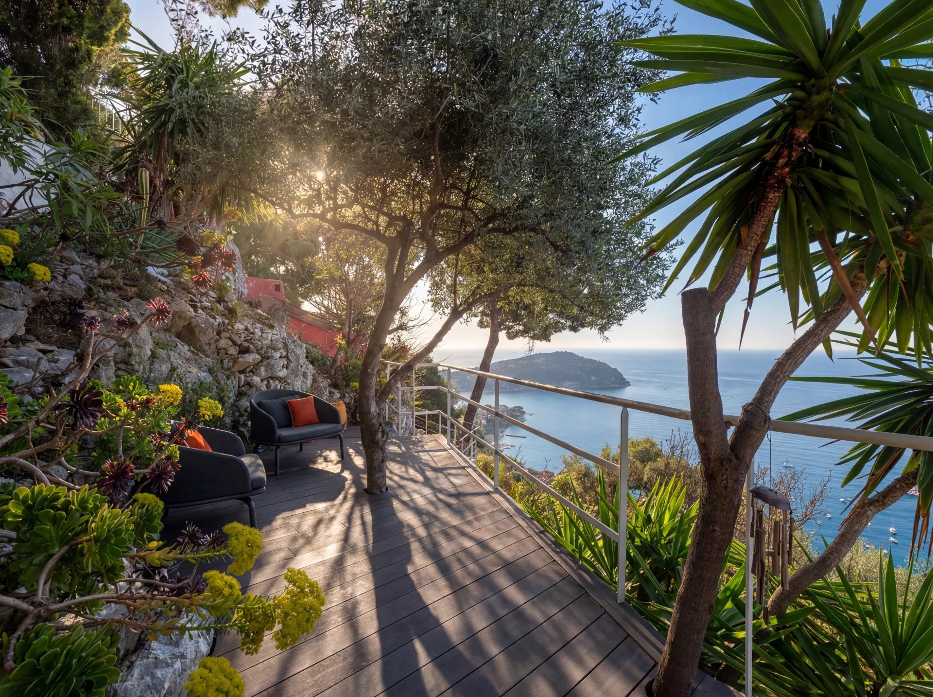 Idéalement située dans un environnement privilégié, cette ravissante maison offre une vue imprenable sur la baie de Villefranche-sur-Mer et Saint-Jean-Cap-Ferrat.